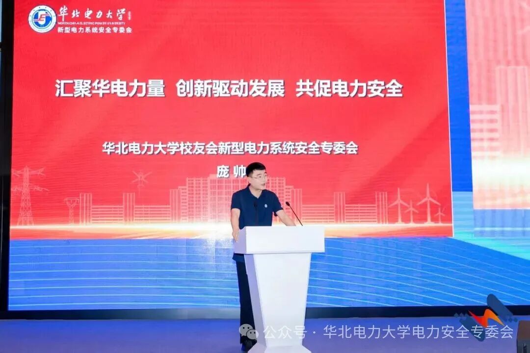 华北电力大学校友会新型电力系统安全专委会庞帅发言,梳理发展沿革,核心发挥三重作用:一是搭建桥梁,紧密连接华电校友、政府与企业,促进多方资源协同;二是深耕电力安全领域,以专业能力赋能行业发展;三是开展“电力安全万里行”活动,切实推动安全理念落地与实践普及,汇聚华电力量,为创新驱动新型电力系统建设提供支撑。