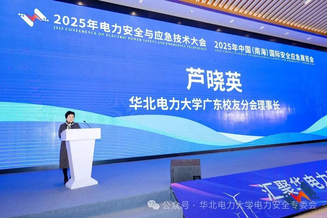 华北电力大学广东校友分会理事长芦晓英作为校友代表致辞。她结合广东区域电力发展特色,分享了广东校友在当地电力安全实践中的经验与成果,表达了校友群体积极参与行业安全建设、反哺母校发展的坚定决心。
