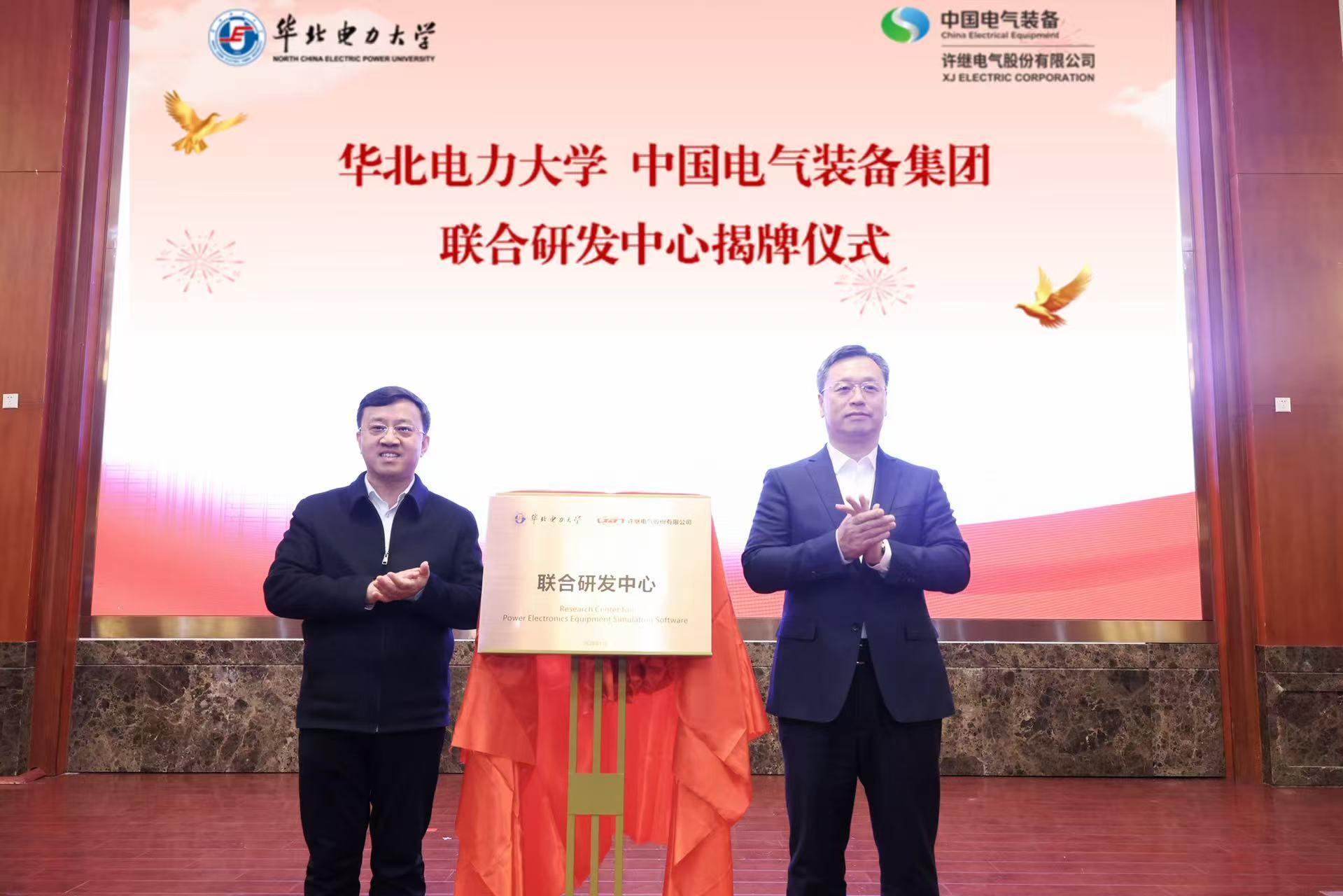 1月23日,华北电力大学与中国电气装备集团联合研发中心揭牌仪式暨与许继电气股份有限公司合作协议签署仪式在京举行。学校党委书记汪庆华,校长、党委副书记毕天姝,中国电气装备集团党委副书记、总经理闫华锋,许继电气股份有限公司党委书记季侃,出席活动并讲话,仪式由毕天姝主持。